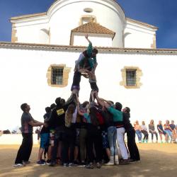 En aquest viatges els joves conviuen, coneixen el funcionament de l'Institut dels seus amfitrions i aprofiten per fer un tast de la cultura i tradicions dels país que visiten. Dijous va ser el moment de descobrir els castells. Els vam rebre a la Plaça del Pi de Santa Cristina (Lloret de Mar), un fantàtic paratge de la costa brava.